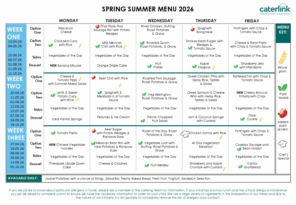 The cost of a School Meal is £2.73, this applies only to KS2 children who are not entitled to a Free School Meal (FSM). This is paid via ParentPay.